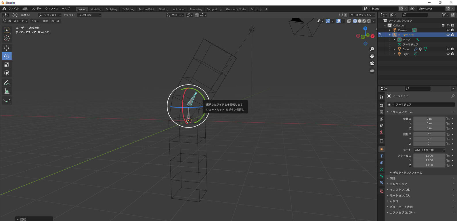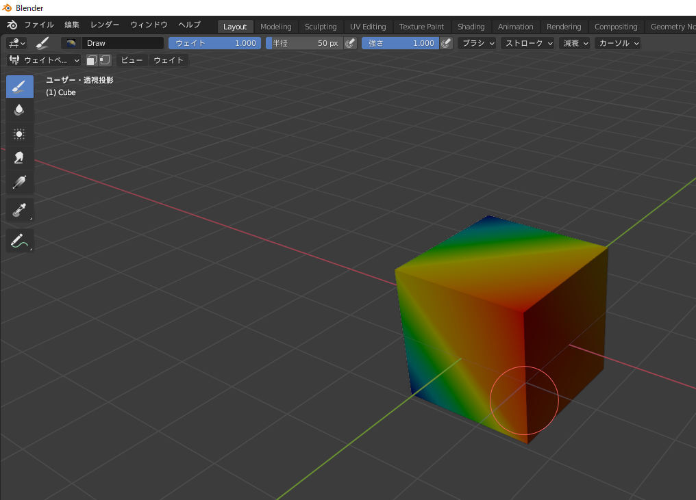 なので、細かいことは気にせずに、ウェイトペイントモードに入って、Cubeをグリグリしてみると・・・