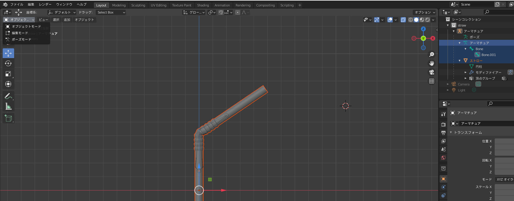 とまあ、ウェイトペイントモードが最初から存在してるじゃないの。ボーンとかアーマチュアとか何もない状態のほうが、ウェイトペイントモードがなぜか現れるwww(^^♪
